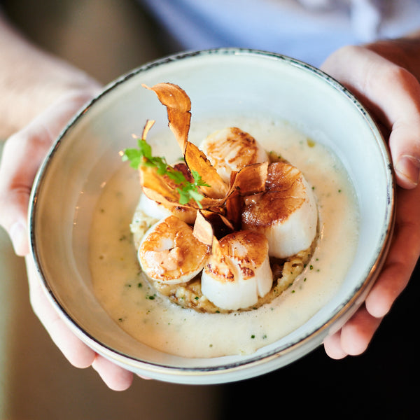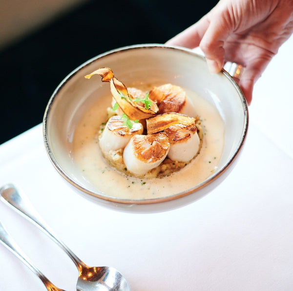 Noix de Saint-Jacques rôties, purée de pommes de terre à la Truffe Noire de Richerenches